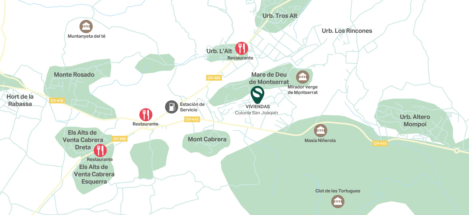 La promoción de la colonia San Joaquín se encuentra a escasos diez minutos de Montserrat, población a la que pertenece.
