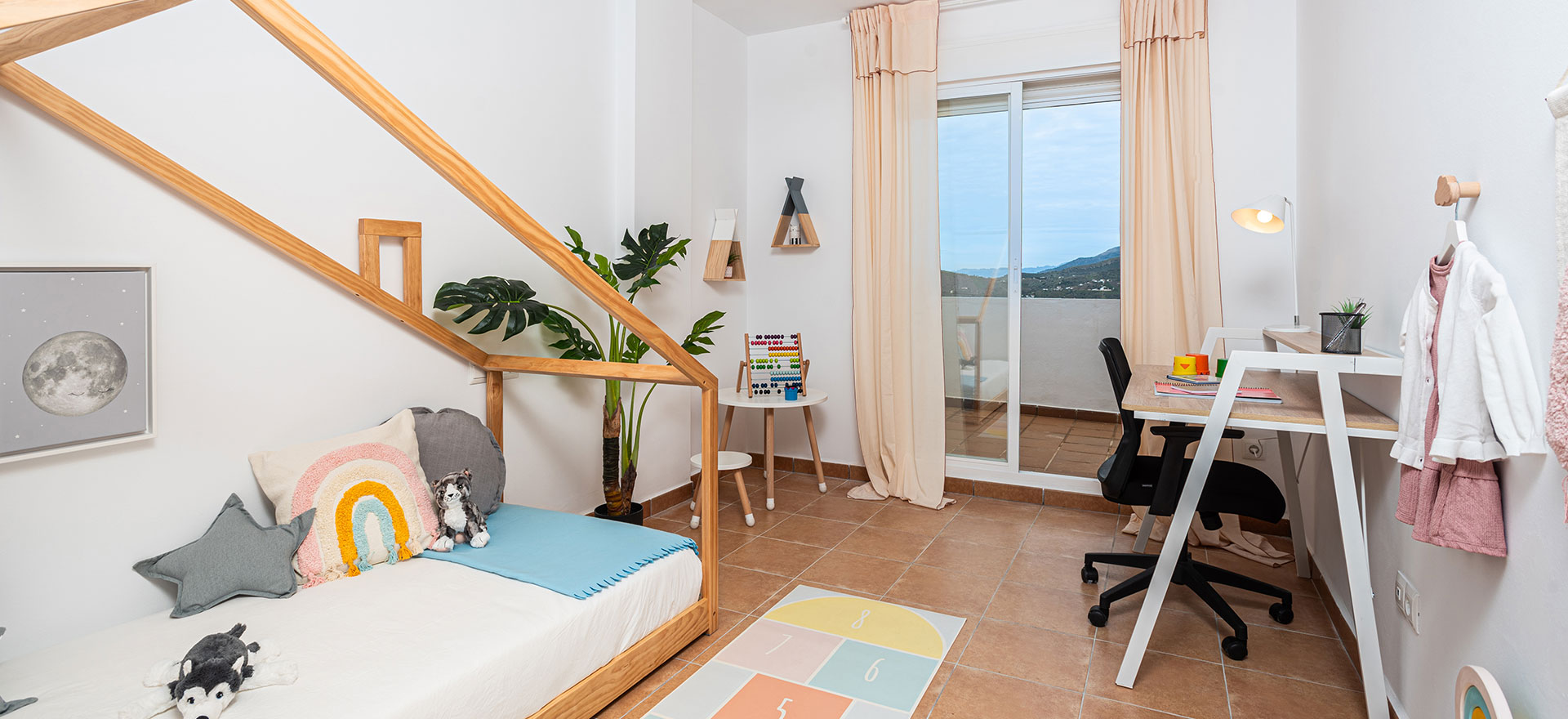 La promoción cuenta con 31 viviendas y 30 plazas de aparcamiento en la planta sótano, distribuidas en varios bloques con ascensor, ofreciendo diferentes tipologías de viviendas a elegir: apartamentos en planta, así como dúplex y tríplex, todos ellos con amplias terrazas que permiten disfrutar de espectaculares vistas despejadas a la montaña y al núcleo histórico de Cómpeta.