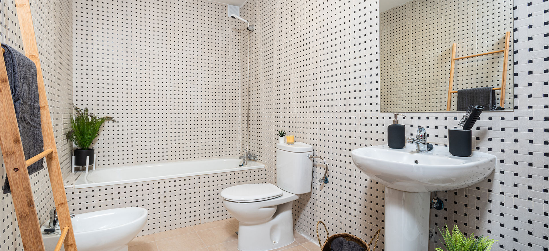 Las viviendas se entregan con cocinas amuebladas y equipadas con horno, vitrocerámica y campana extractora de humos, además de contar con encimeras de alta calidad tipo COMPAC y con acumuladores de agua eléctricos.