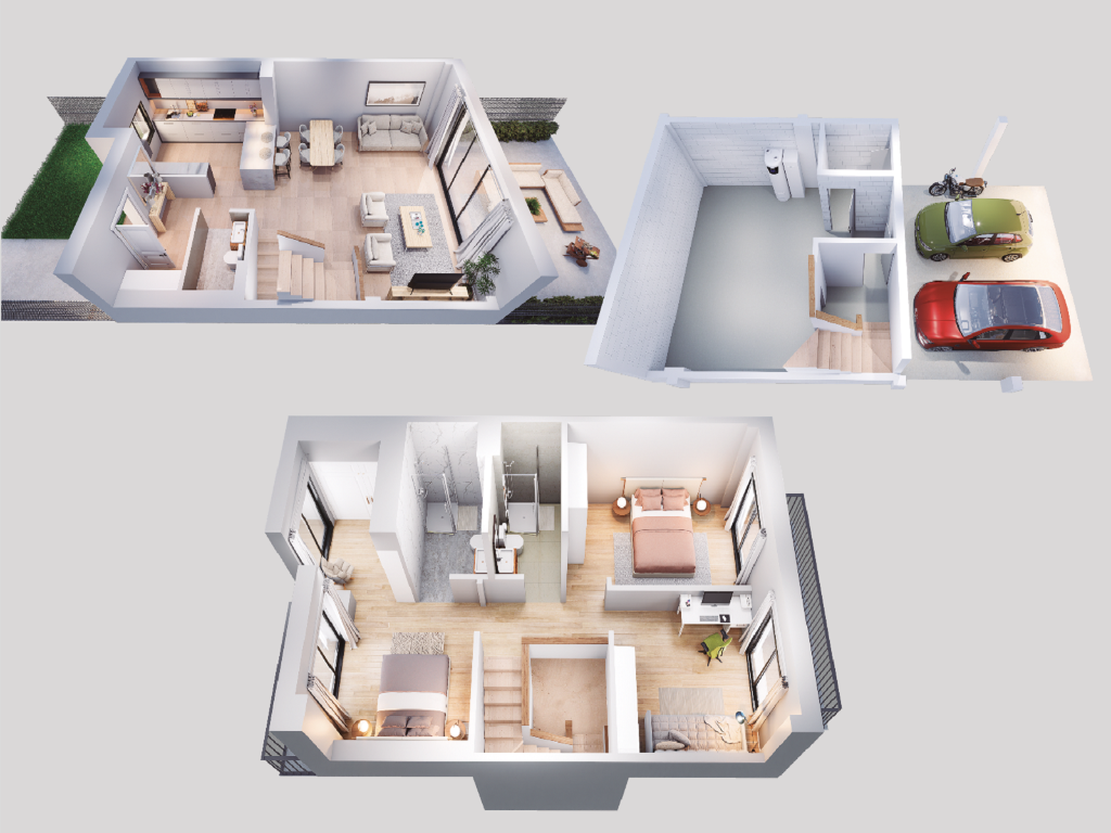 Elige entre las 9 viviendas unifamiliares adosadas la que mejor se adapte a ti. Todas ellas disponen de terraza y jardín trasero, zona privada en la entrada, garaje para dos vehículos y un amplio espacio en el sótano, habitaciones de generosas dimensiones, terrazas y cómoda accesibilidad. Y para que todo sea perfecto, puedes elegir entre diferentes tipologías (cocina abierta o cerrada, habitación versátil en planta baja).