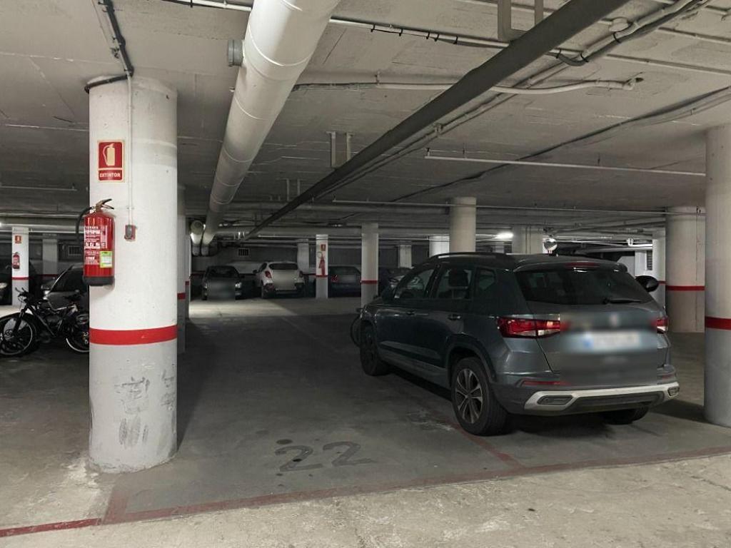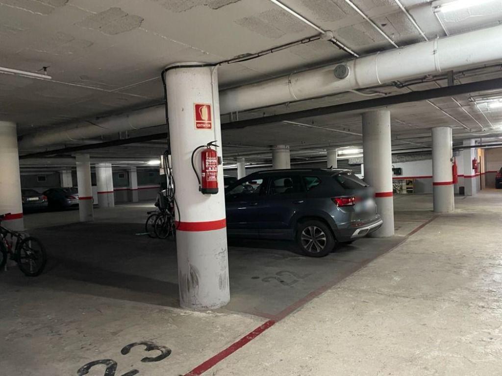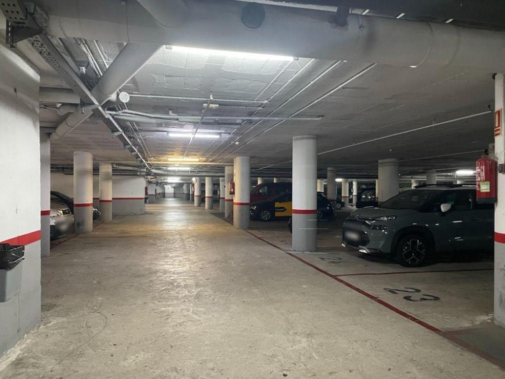 Plaza de parking situada en la planta sótano de un edificio residencial.