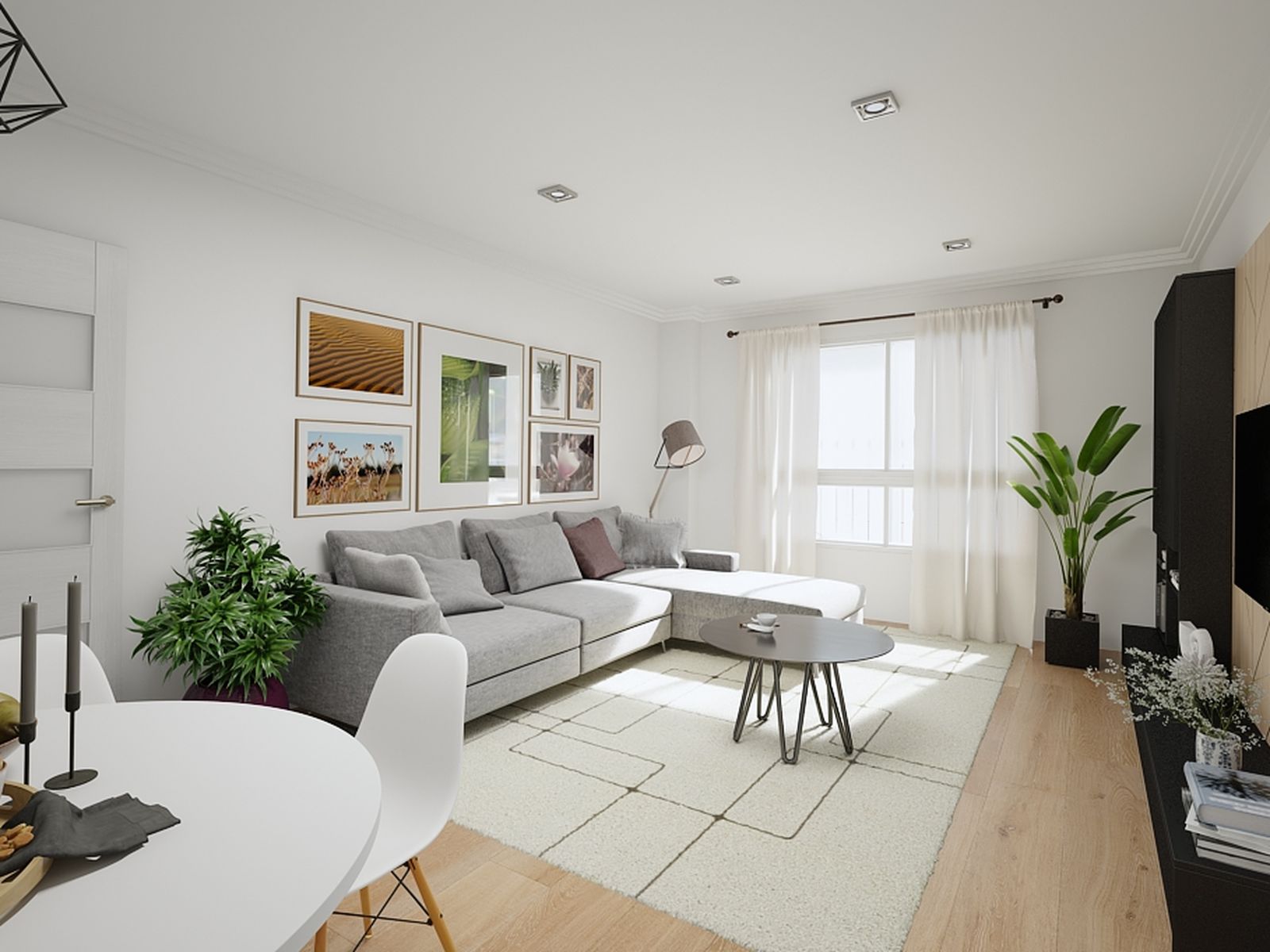 Viviendas de 1 a 3 habitaciones y 1 o 2 baños con preinstalación de A/A, carpintería exterior de aluminio con doble vidrio y suelos de terrazo (excepto en cocina y baños que son de gres).