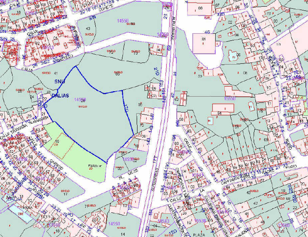 Parcelas de terreno urbano no consolidado de uso predominantemente residencial plurifamiliar en manzana cerrada y el unifamiliar en hilera. La tipología permitida es de dos plantas de altura más ático.