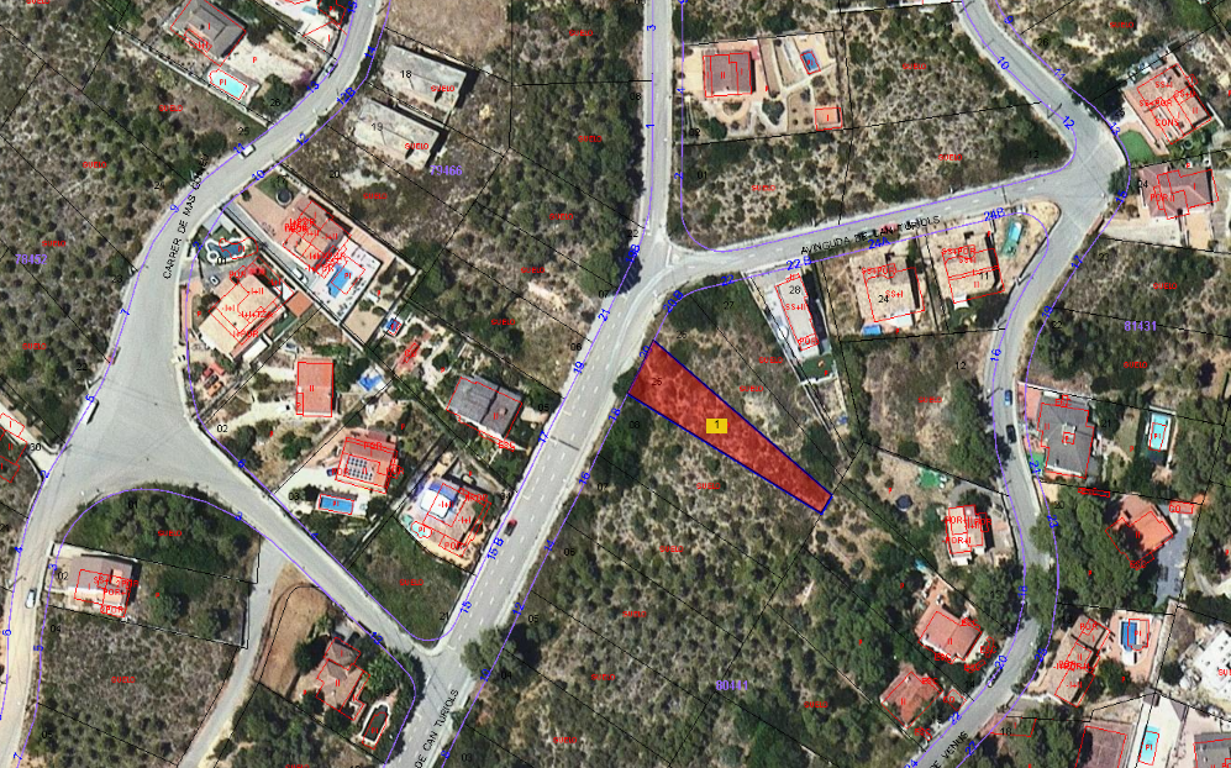 Suelo urbano consolidado en esquina y calle principal. Situado en zona residencial con alta oferta de suelos a su alrededor y bien comunicado con carretera BV-2415.